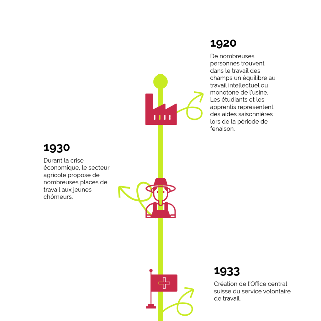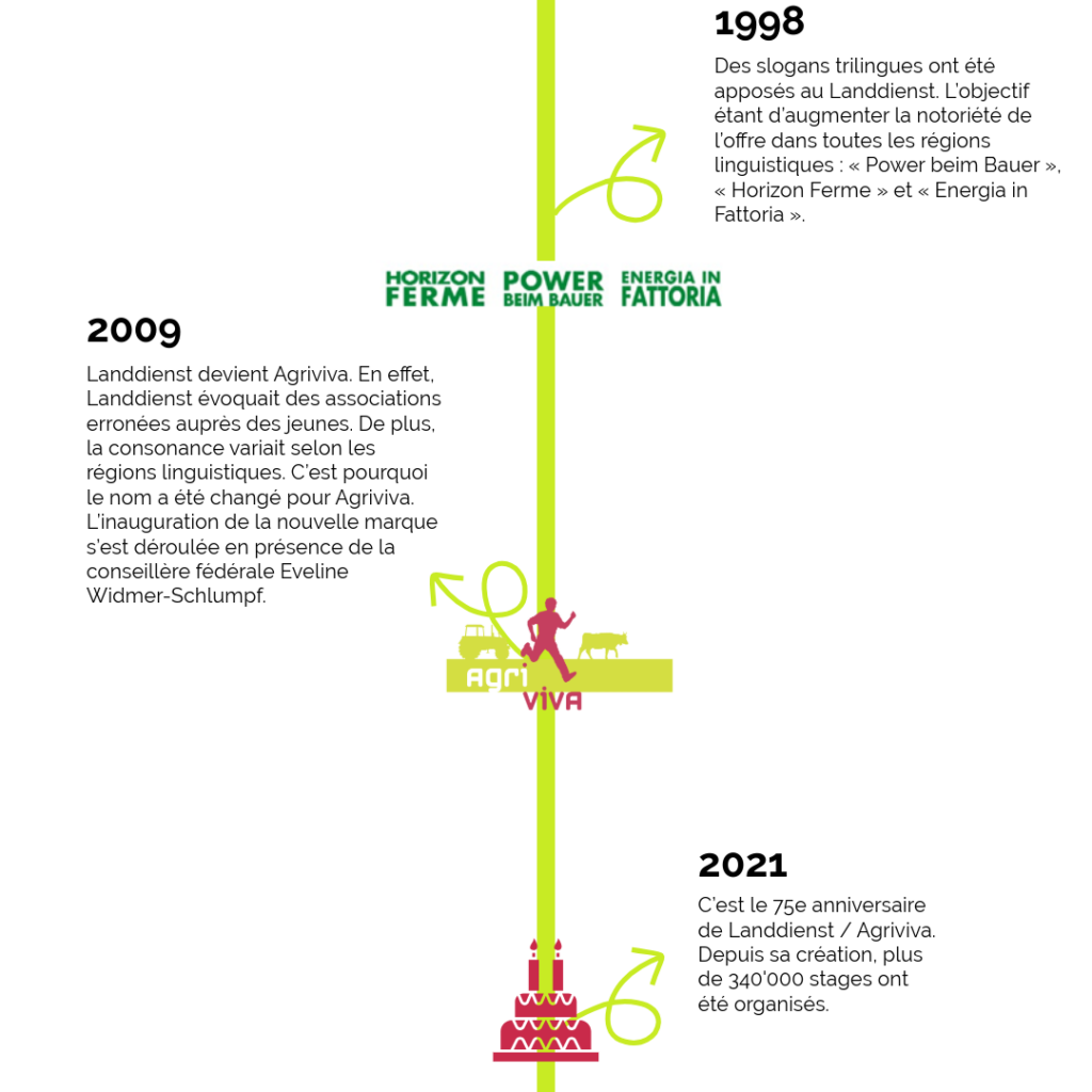 L’histoire d’AgriViva remonte loin dans le temps et répondait hier comme aujourd’hui aux besoins de la population. De la recherche d’une compensation au travail monotone en usine dans les années 1920 à la demande de Digital Detox en 2026.